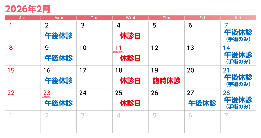 2月の休診のお知らせ